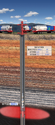 山东德仕石油装备有限公司于2014年5月24日21点开始注汽,直到6月10日6点停注,停注前蒸汽出口压力28.2MPa,出口温度378度,注汽流量8m3/h ,油压28MPa,累计注汽3107m3。
